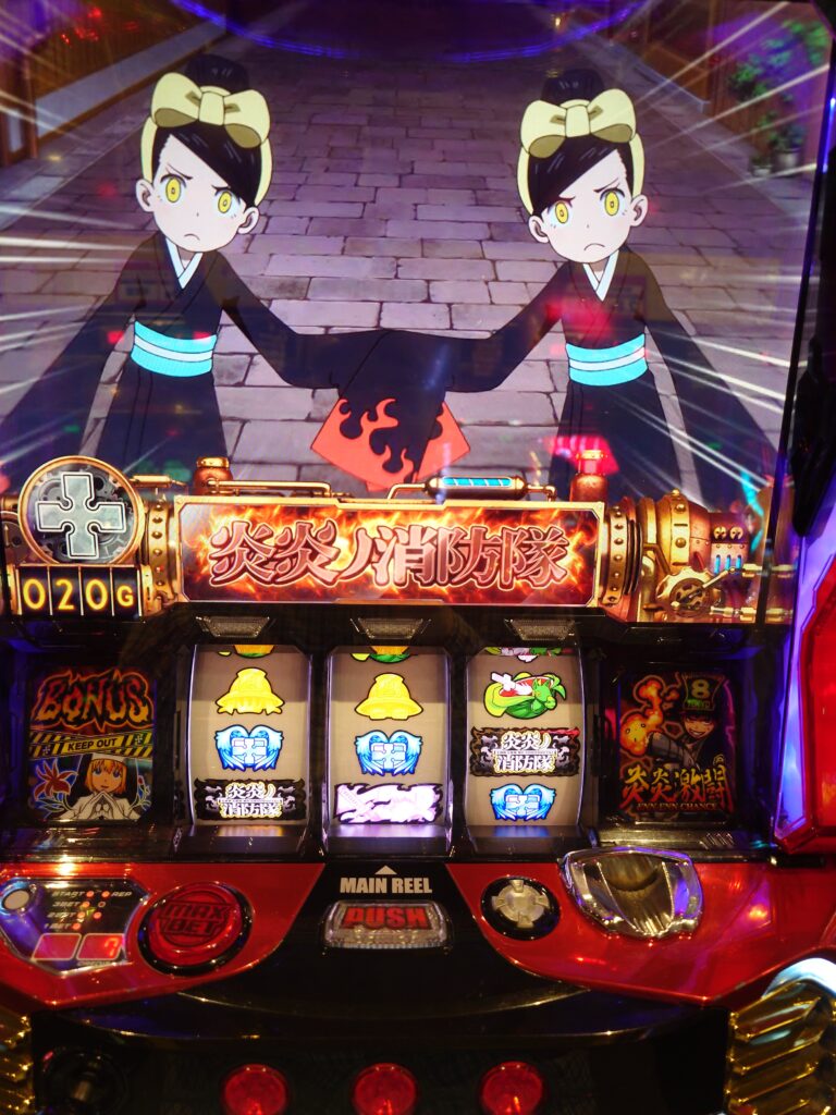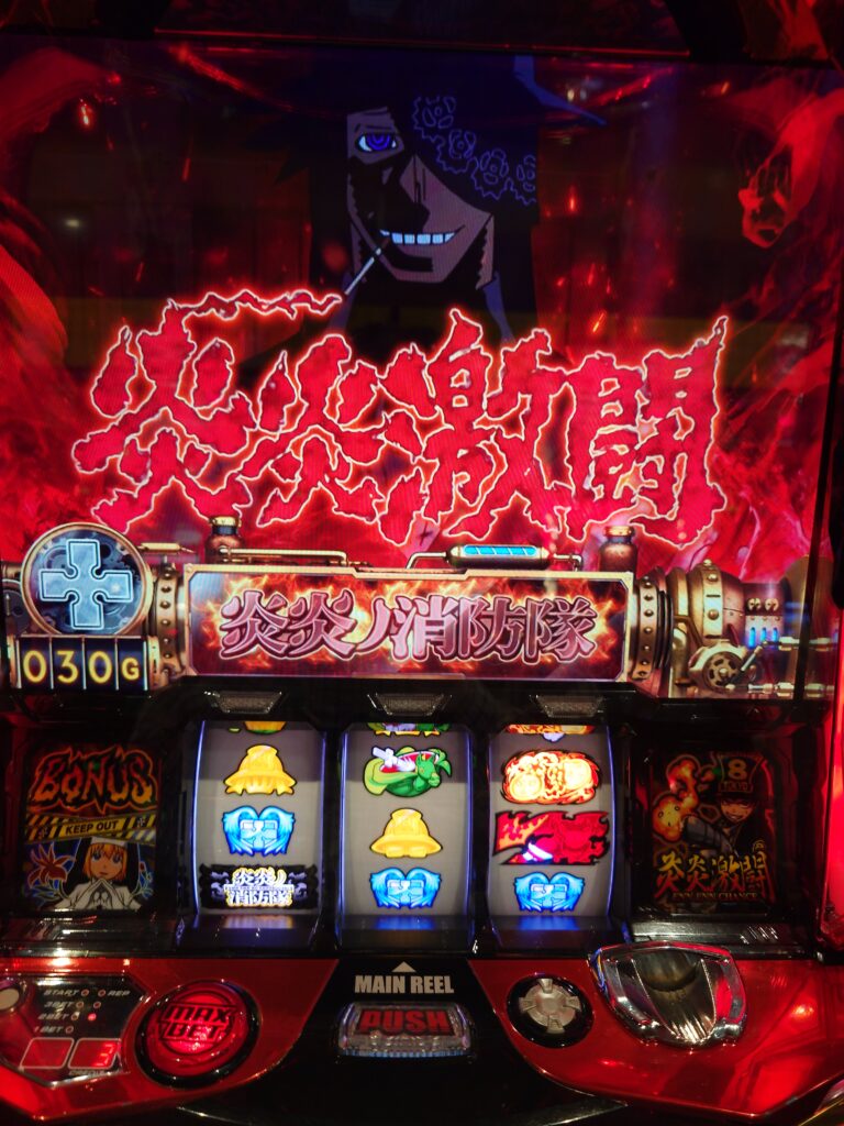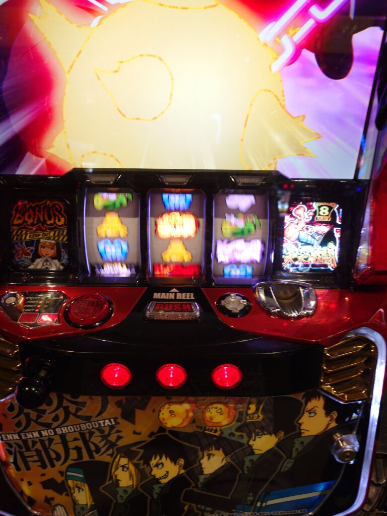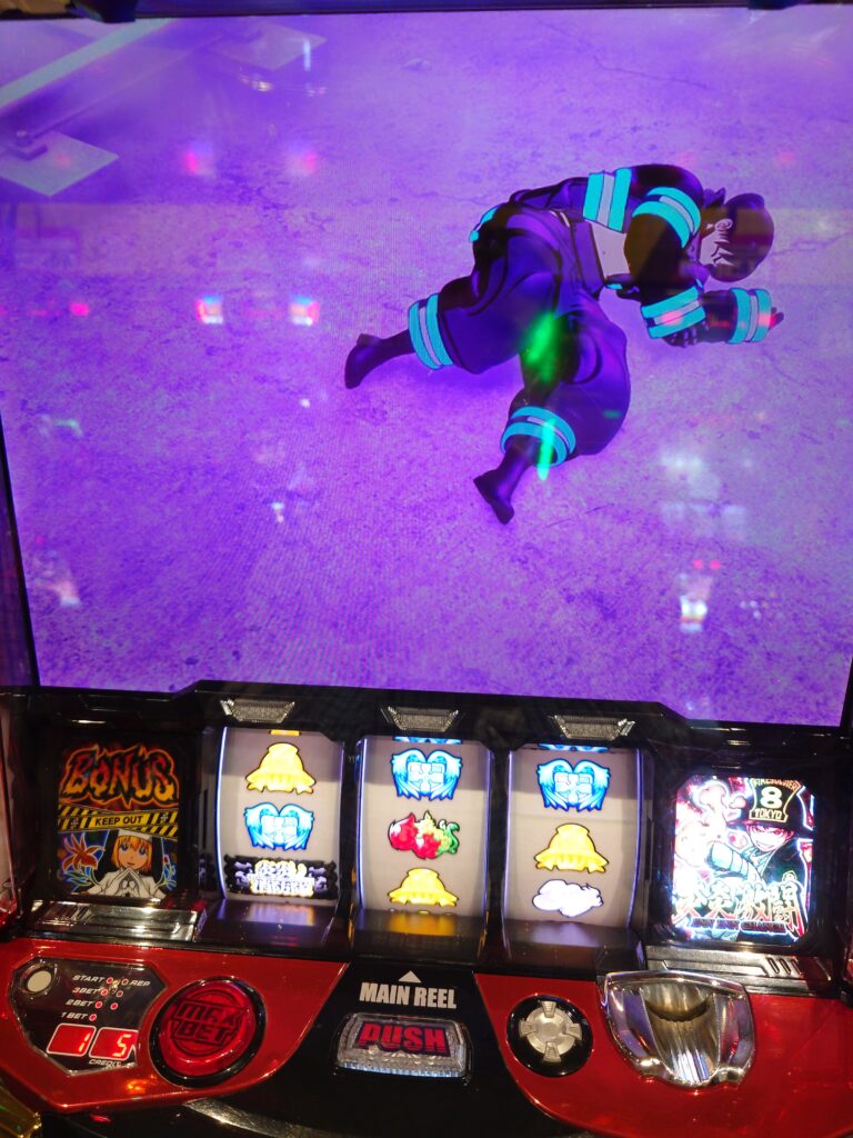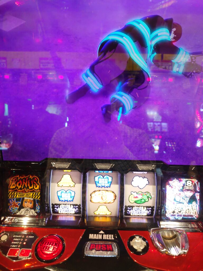 今回選んだのは、炎炎の消防隊 6.5号機(赤い筐体)です。今まで、期待値稼働では見つけたことがなかったので初打ちです。目標は上位ATのアドラバーストに入れるまで打ってみようと思います。
