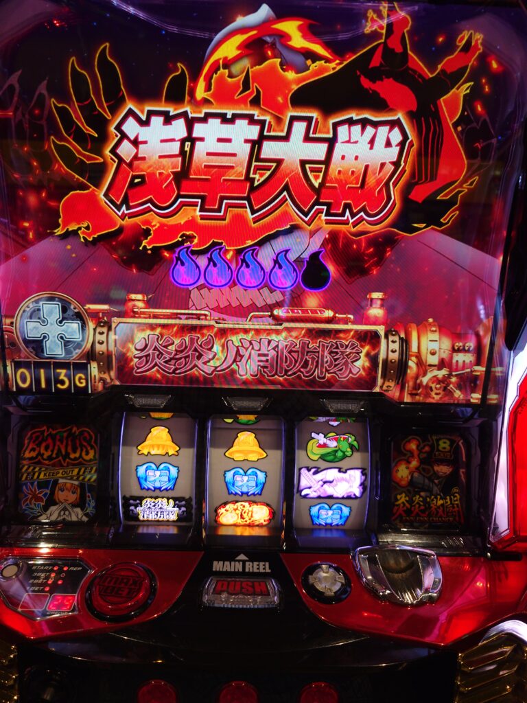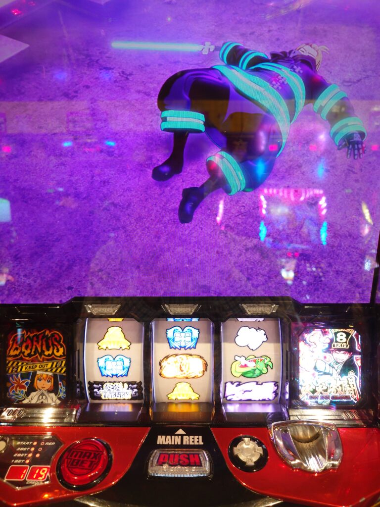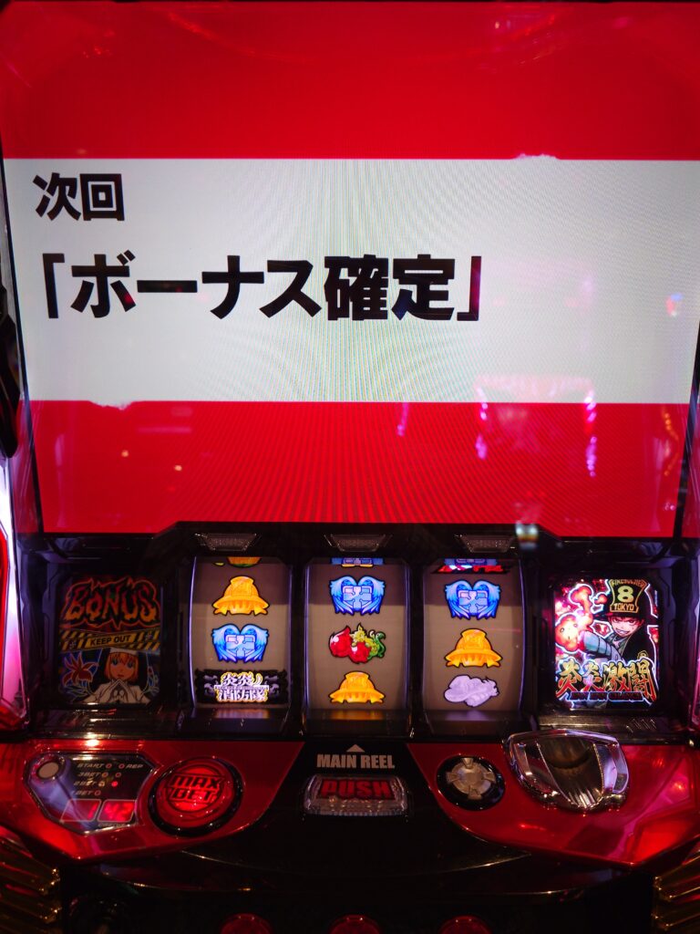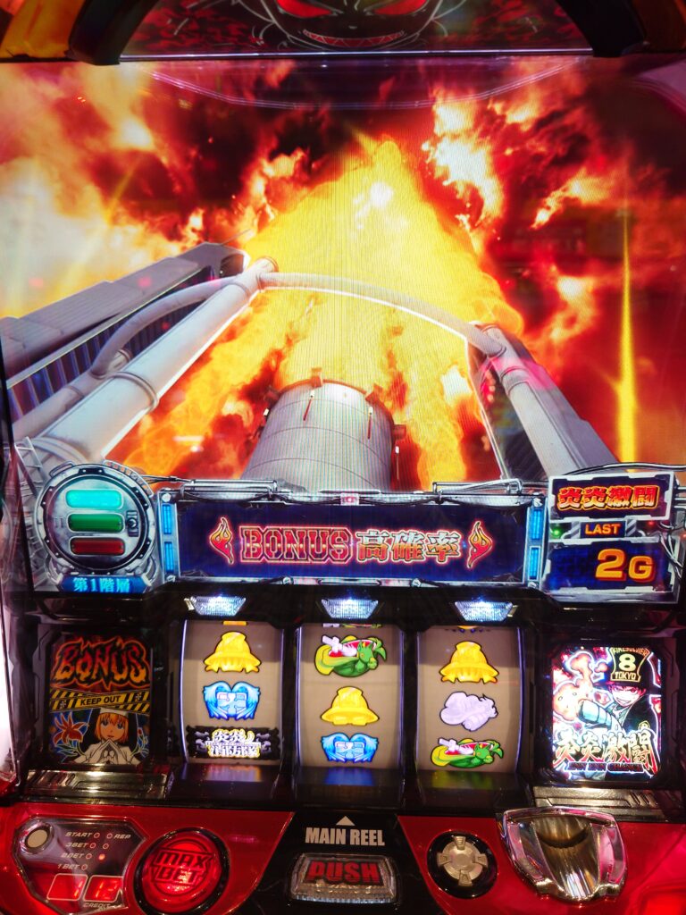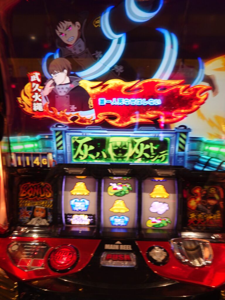 今回選んだのは、炎炎の消防隊 6.5号機(赤い筐体)です。今まで、期待値稼働では見つけたことがなかったので初打ちです。目標は上位ATのアドラバーストに入れるまで打ってみようと思います。