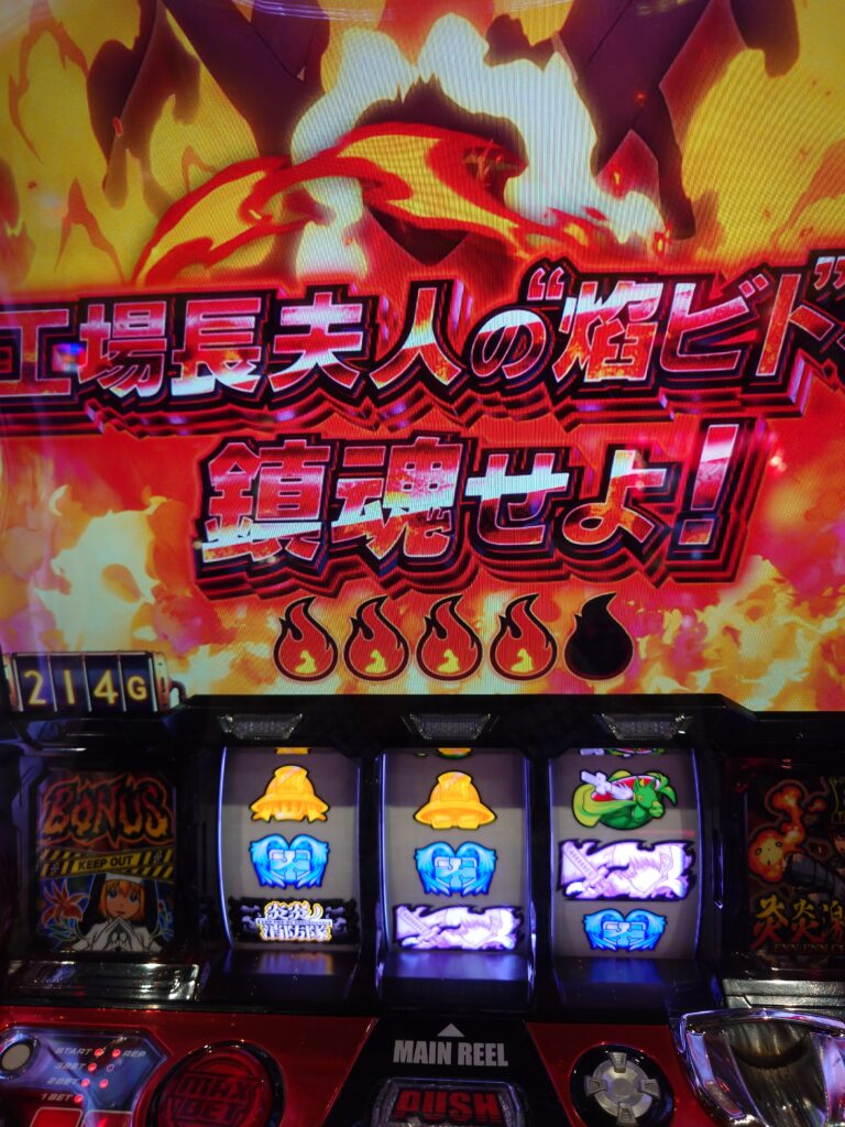 • 炎炎ボーナス中1枚ベル3連を3回引くが外れ、写真を撮り逃している