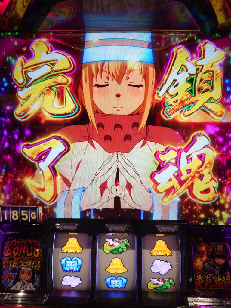 すごい偉そうな演出で当たりましたが、普通に炎炎ボーナスでこれが最後でした。