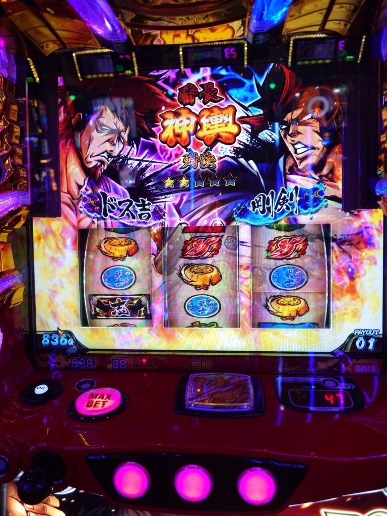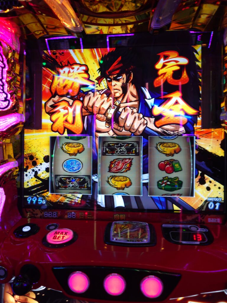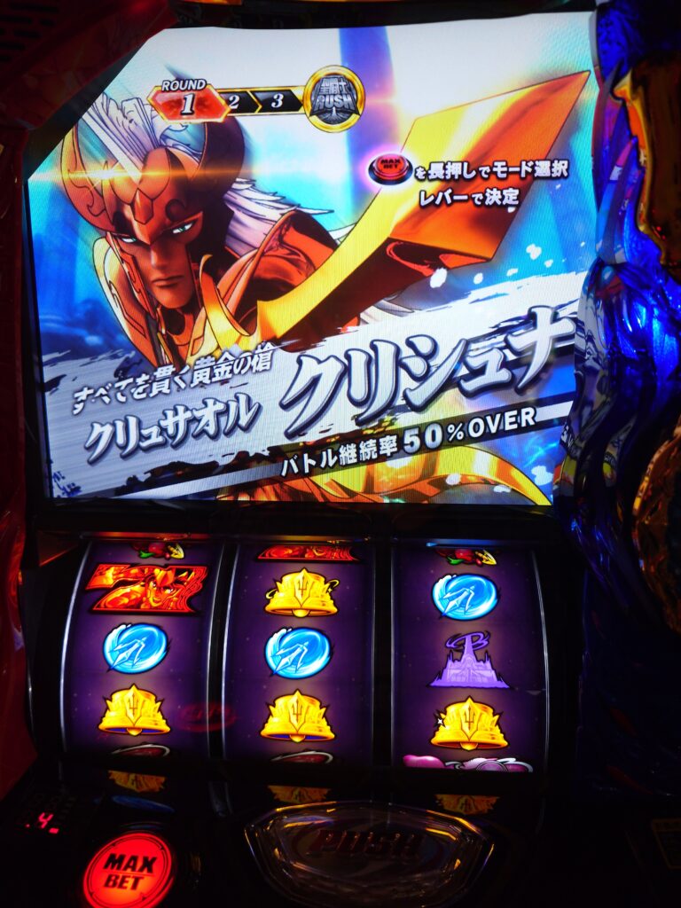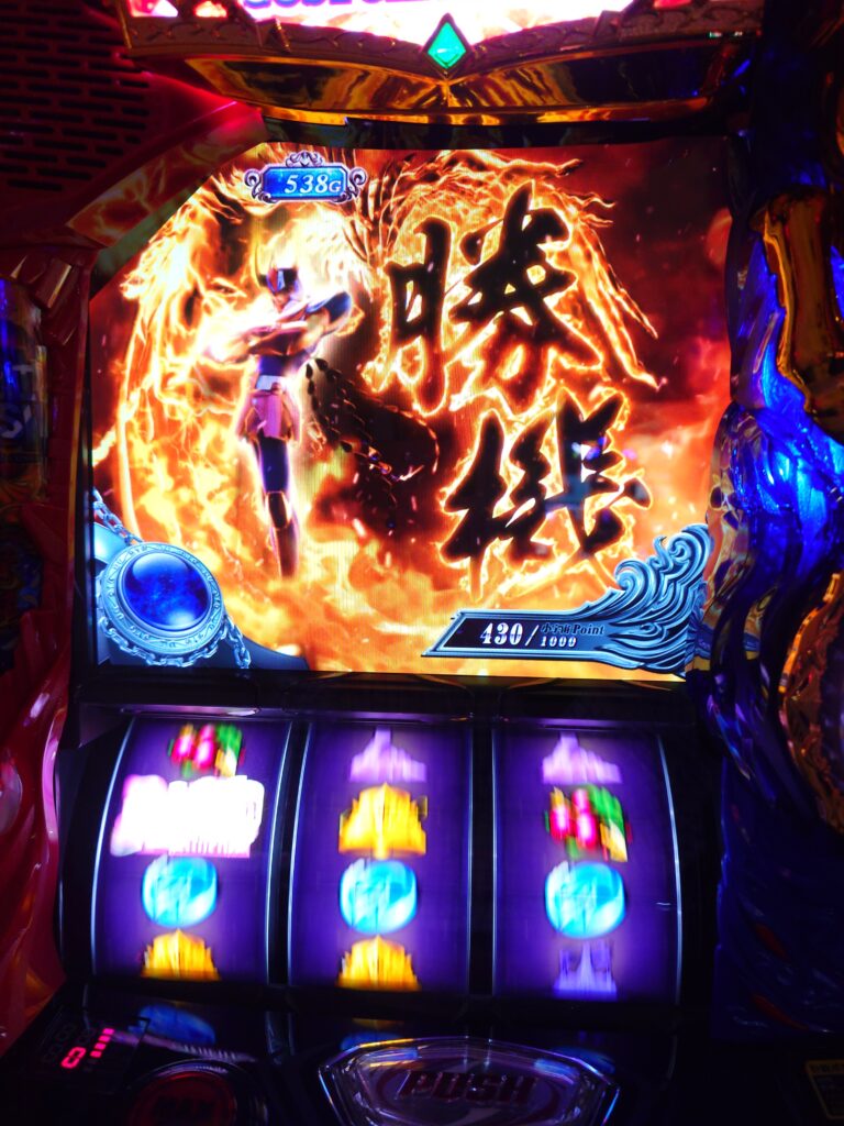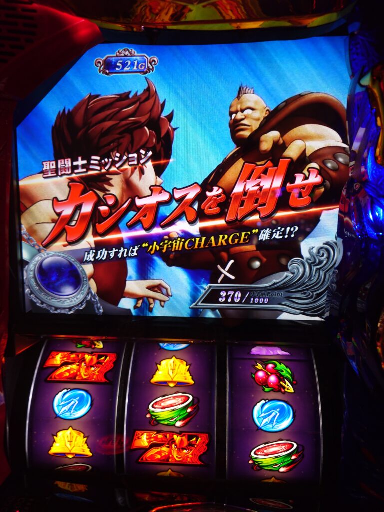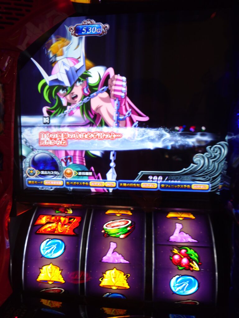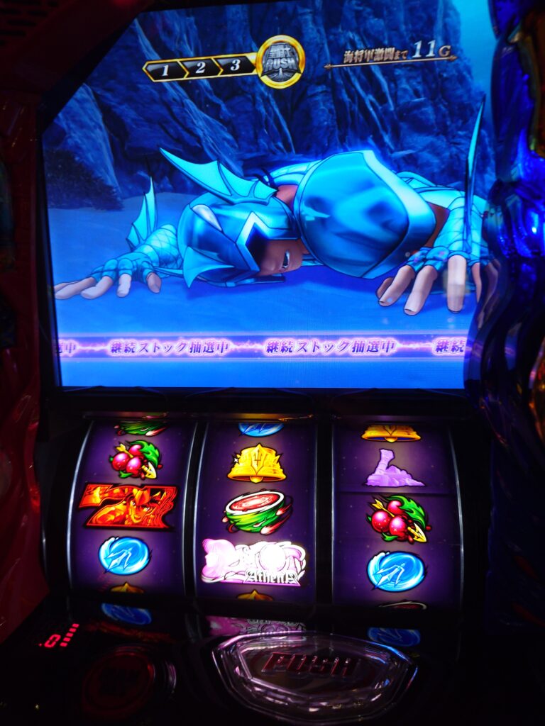 - 1台目:499Gの聖闘士星矢を天井狙い→539G GBに当選するがATに入らず