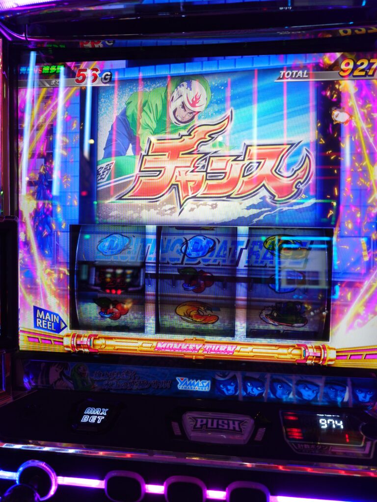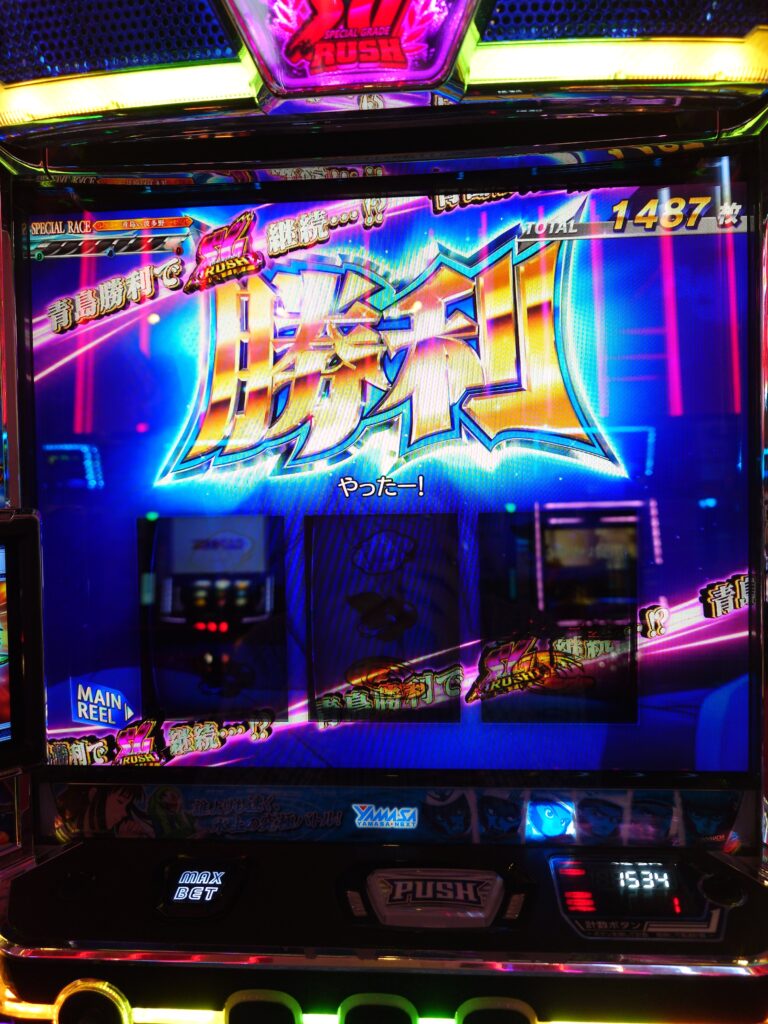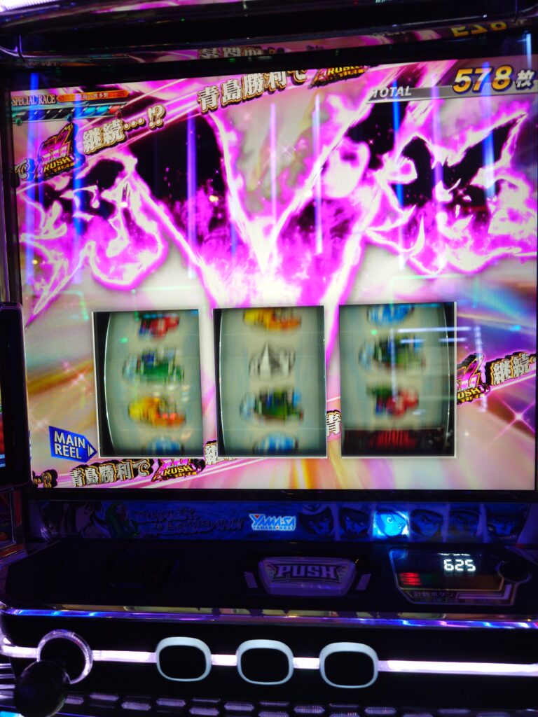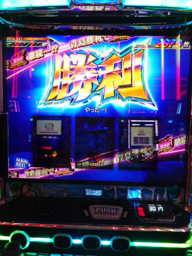 15時すぎ、外の用事を済ませてホールについてチェックしてみると493Gの台があったので天井狙いすることにしました。(おまけでVストックつき!)そしたら青島SG(上位AT)に入ったのでその時の展開をブログにしてみましたので、よろしくお願いします。