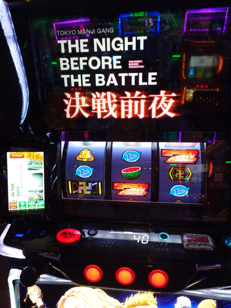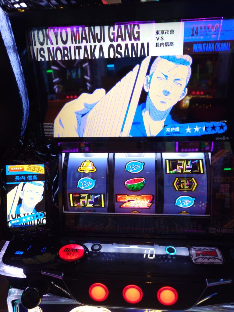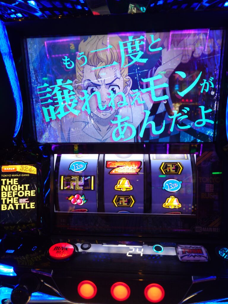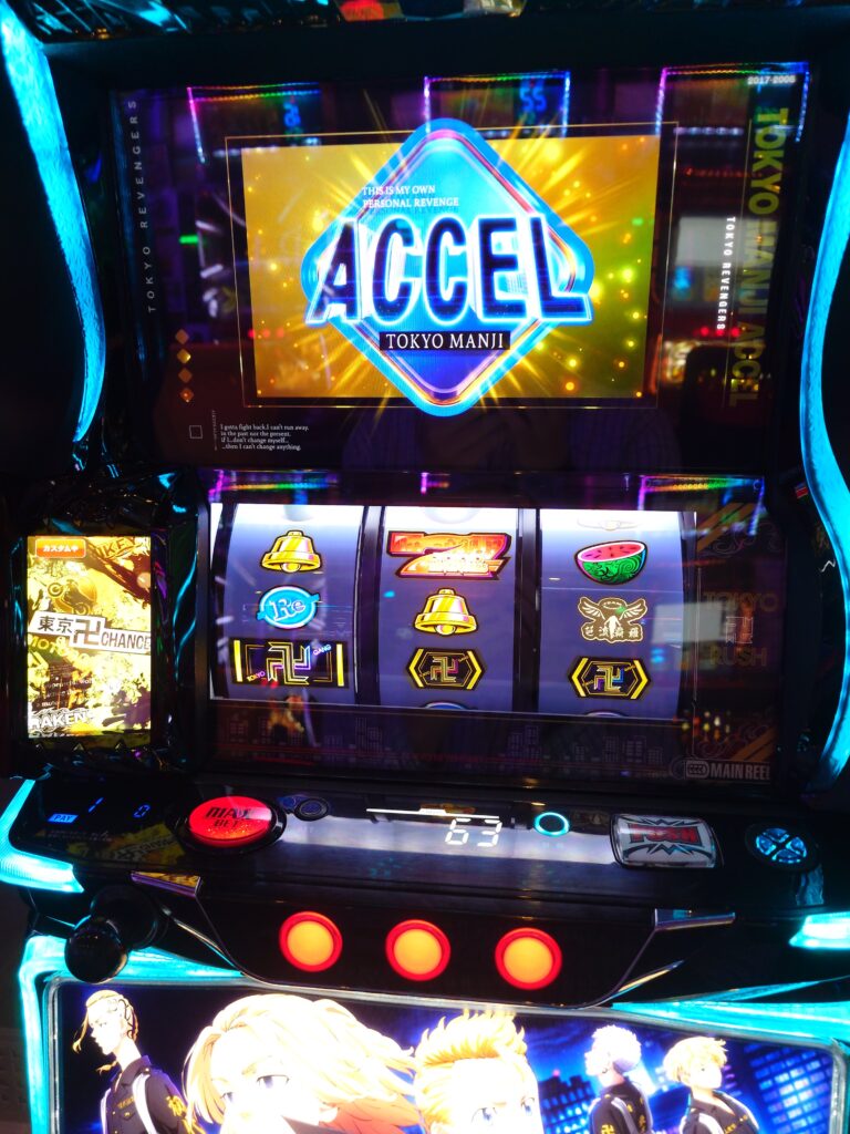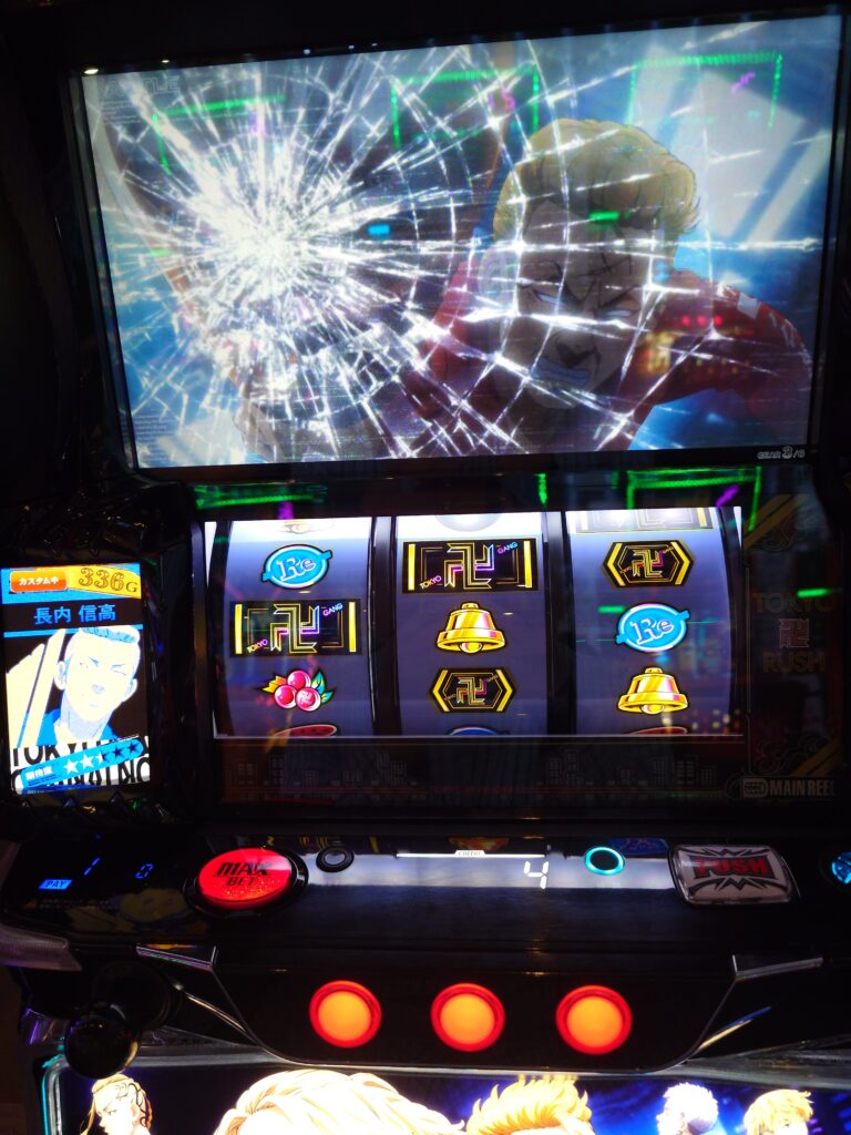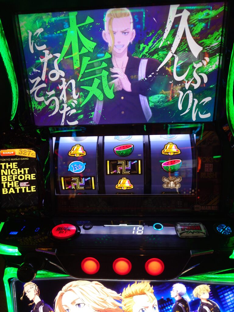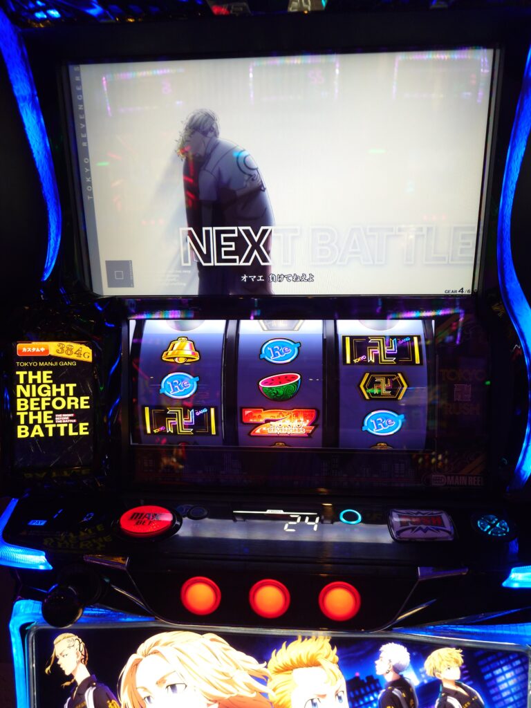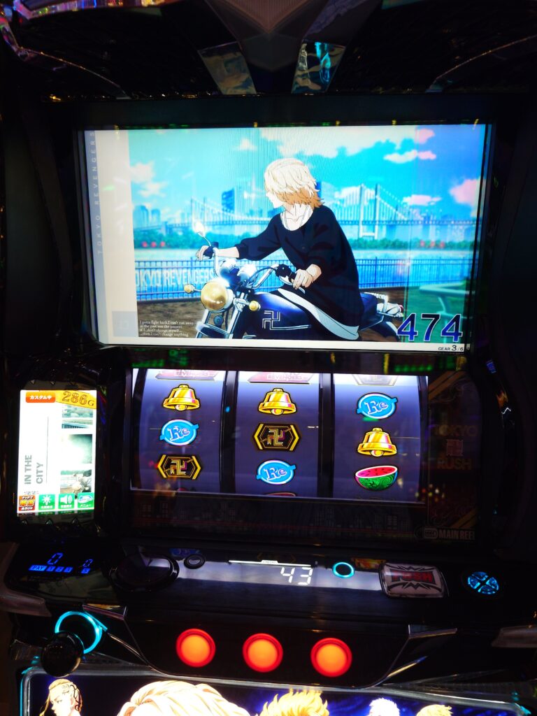 - 1台目:東京リベンジャーズを3周期目474の台を周期狙い→外れ→決戦前夜中弱チェ2回引いたので様子見でアクセル突入し290ポイント獲得→その前兆から東卍CHANCE当選→差枚数-153枚