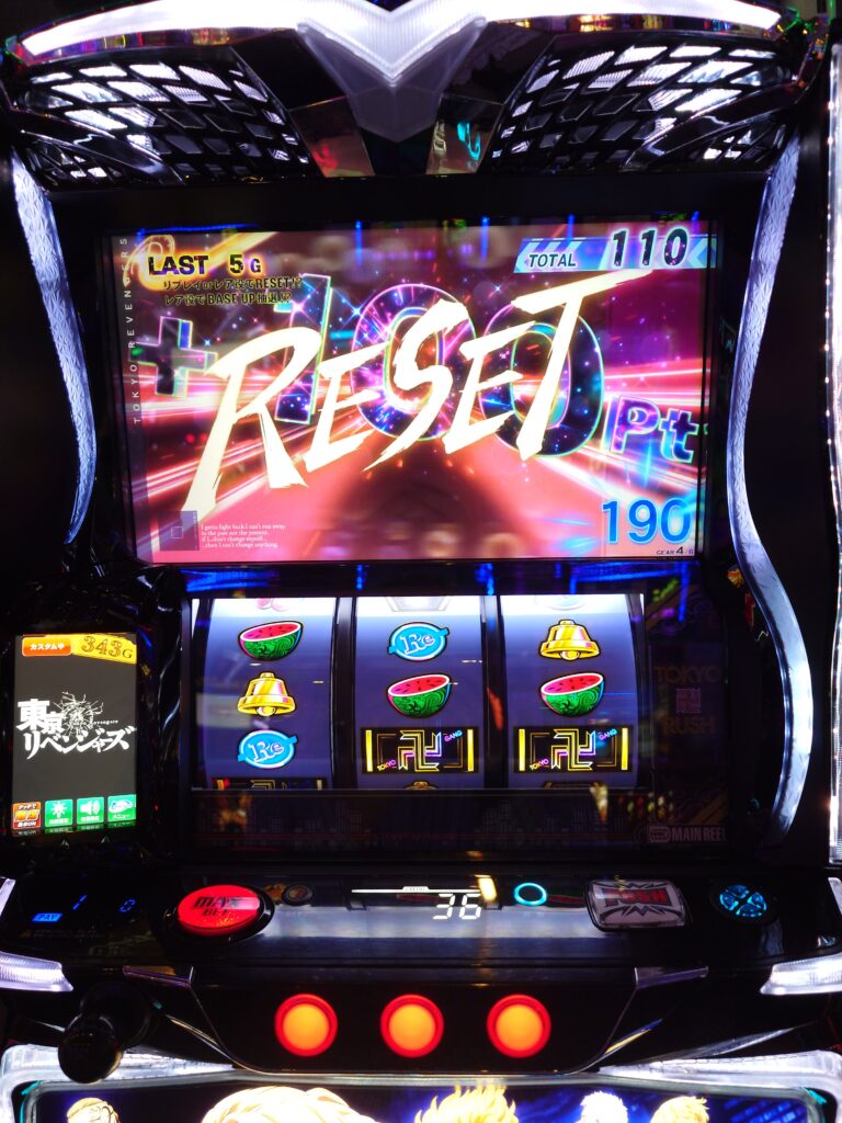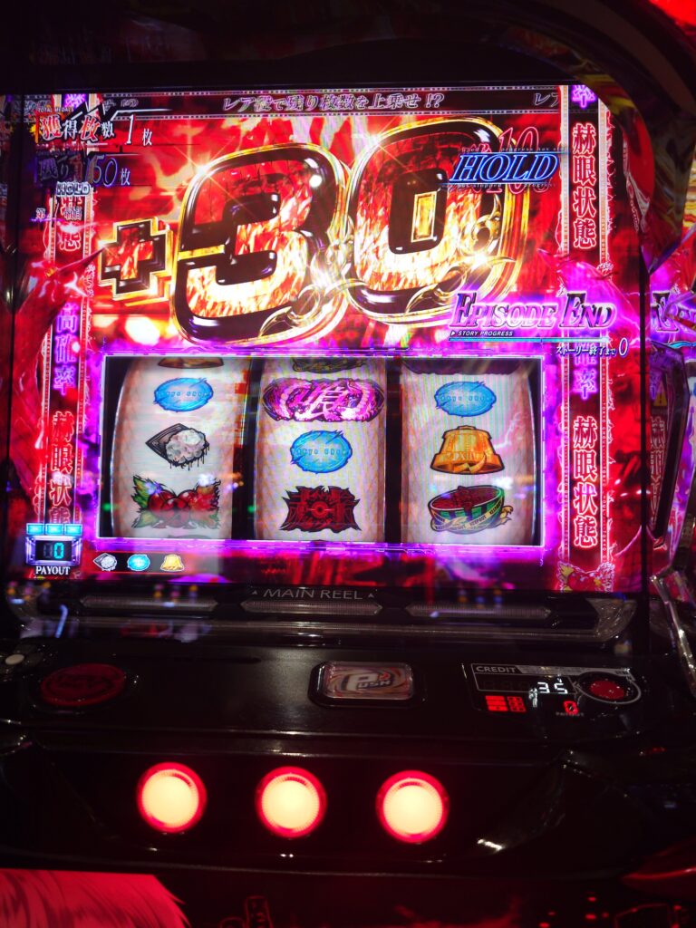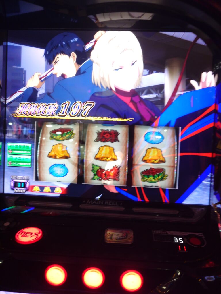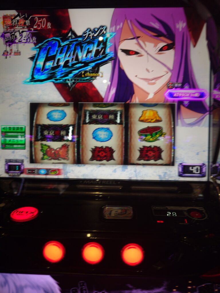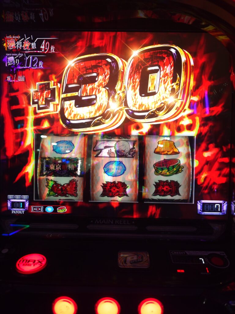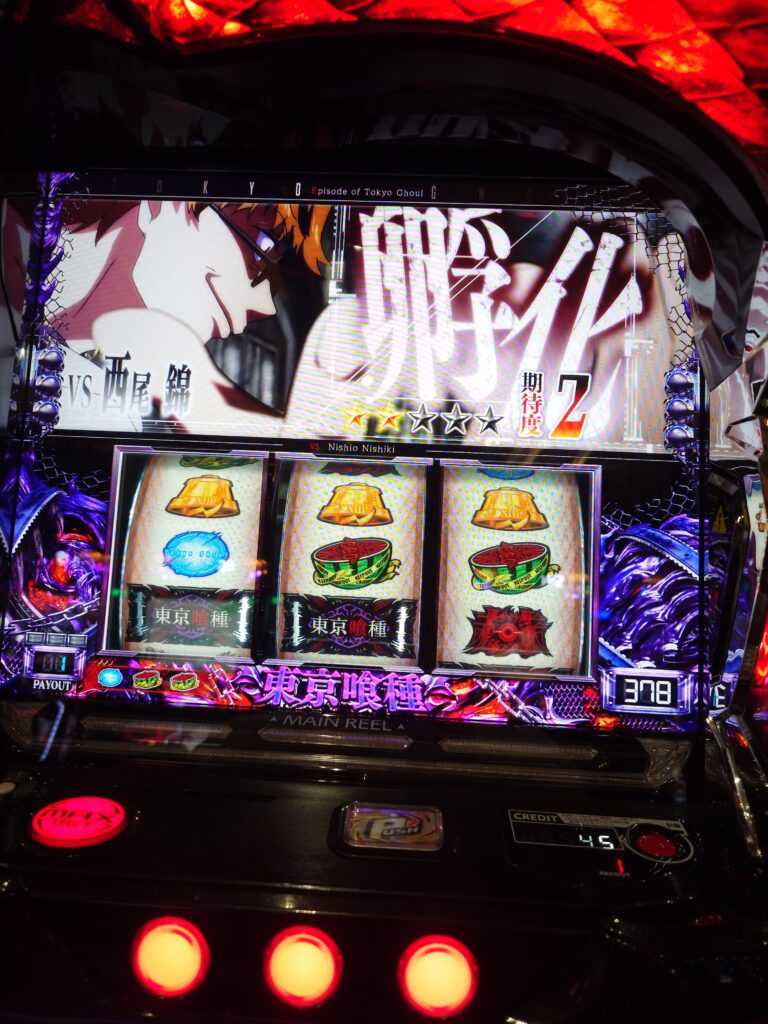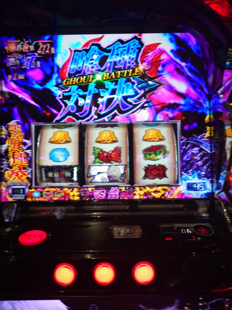 - 2台目:東京グール756Gの台を天井狙い→479ポイント弱チェリーから精神世界へ行ってレミニセンス当選→CZ中下段リプレイを引いてAT当選→BITESで300枚獲得→差枚数-24枚